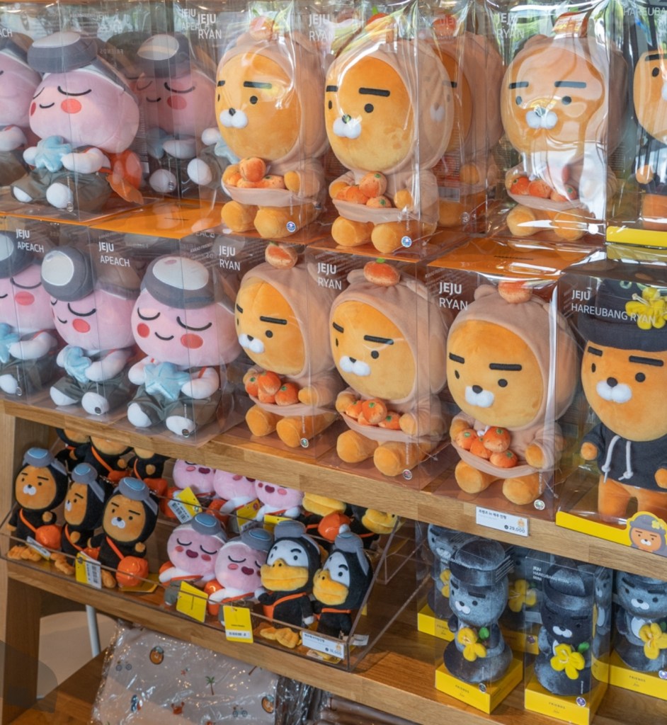 Kakao friends are unique character products that resemble the characters in Kakao Talk which are truly popular in Korea because of their cuteness. As for Jeju Island, there are Kakao Friends dolls that are made to resemble the symbol of Jeju Island in the form of : stone statues of Jeju Island’s guardian grandfather, Dol Hareubang and the incredible woman divers of Jeju Island, Haenyeo. There are two stores for Kakao Friends in Jeju Island : inside Jeju International Airport (duty free shop) and Jeju City area. There are also two choices of the dolls : mini and large doll sizes that you can choose as your favorite one. The prices for mini dolls start from 14,000 won – 17,000 won while the large ones are 23,000 won – 28,000 won.