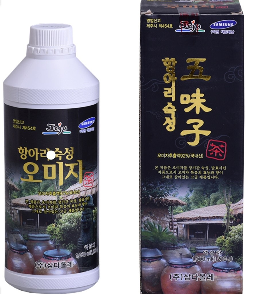 Omija tea is well-known fruit-based tea product produced in Jeju Island. it is called omija because it tastes sweet, astringent, bitter, salty, and sour. Omija tea has been widely used as a secret to protect health along with herbal medicine since ancient times There are various benefits drinking this omija tea such as as for women, this tea can be a diet tea cause it has no calories, recovering from fatigue cause of containing a lot of organic acids, lowering your blood pressure, preventing aging by the acidification of cells, improving your vision, heart function, and concentration, also removing hangovers after drinking it, it will make your stomach feel better. you can drink this tea (2-3 tablespoons) with warm or cold water. the price is ranging from 20.000 won-35.000 won